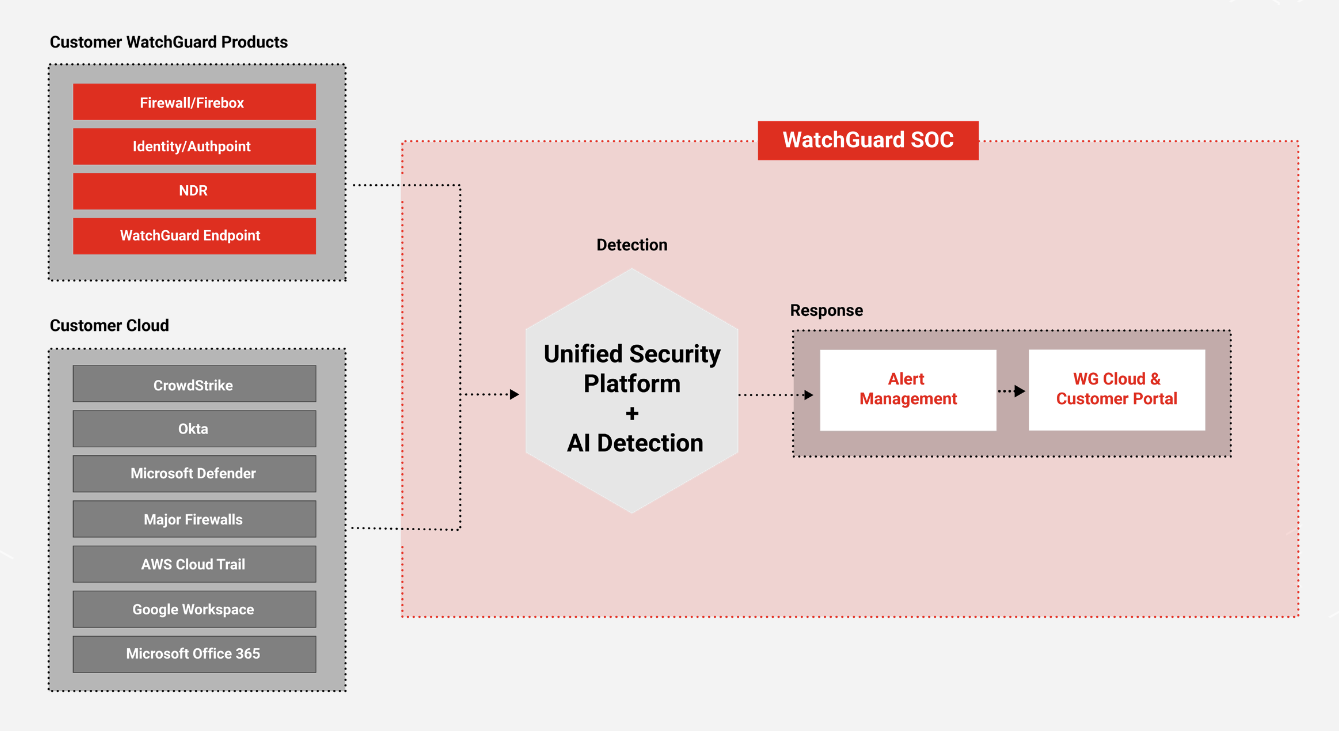 Works across WatchGuard and third-party tools, including Microsoft Defender, CrowdStrike, Okta, and leading firewalls, to meet partners where they are without requiring a tool migration.